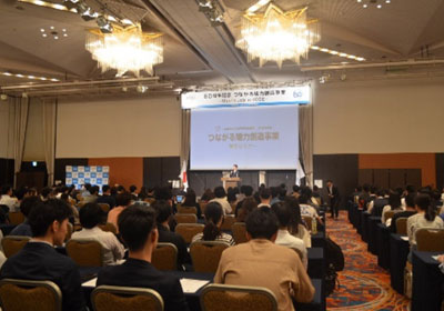 また、2018年度には『つながる魅力創造事業』と題する年間事業を行い、5月には神戸の学生が、在神企業の魅力と神戸のまちで働く魅力を自ら考え、自身の将来設計や目標設定を具体化してもらうことを目的としたセミナーを開催、約400名が参加しました。